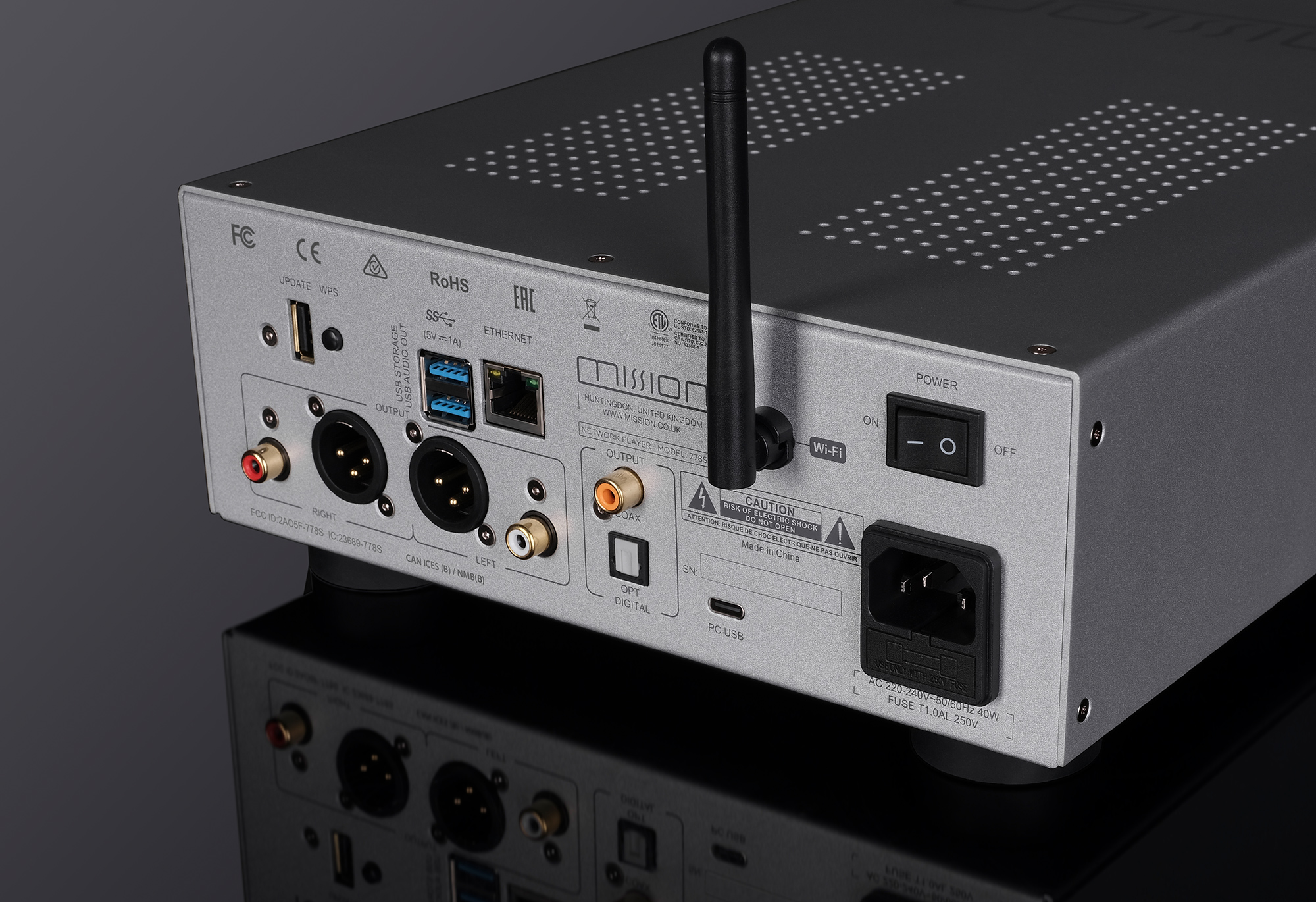 Die Integration moderner Streaming-Technologien wurde in enger Zusammenarbeit mit Silent Angel realisiert – einem Spezialisten für hochauflösende Netzwerk-Audiolösungen. Der 778S nutzt eine optimierte Plattform mit hoher Stabilität und maximaler Klangreinheit. Über die dedizierte Mission 778S App (iOS und Android) lassen sich Spotify Connect, TIDAL Connect, Qobuz Connect, TuneIn Radio, AirPlay 2, DLNA sowie Roon Ready direkt ansteuern – kabellos via WLAN oder über Gigabit-Ethernet.